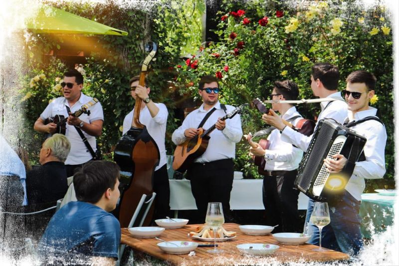 amburaški sastav Zlatni Zvuci – Veselje i tradicija koja dira ravno u srce Ima li boljeg načina za započeti vaš dan iz snova od toplog zvuka tamburice? Tamburaški sastav Zlatni Zvuci iz Zagreba čine mladi, veseli i uvijek nasmijani glazbenici čiji je glavni zadatak stvoriti savršenu, opuštenu atmosferu na vašem vjenčanju. Osnovani 2010. godine, iza sebe imaju bogato iskustvo sviranja na bezb... amburaški sastav Zlatni Zvuci – Veselje i tradicija koja dira ravno u srce Ima li boljeg načina za započeti vaš dan iz snova od toplog zvuka tamburice? Tamburaški sastav Zlatni Zvuci iz Zagreba čine mladi, veseli i uvijek nasmijani glazbenici čiji je glavni zadatak stvoriti savršenu, opuštenu atmosferu na vašem vjenčanju. Osnovani 2010. godine, iza sebe imaju bogato iskustvo sviranja na bezbrojnim svadbama, manifestacijama i poznatim restoranima, gdje su prepoznati ne samo kao kvalitetni glazbenici (većina članova ima završenu glazbenu školu), već i kao vrhunski zabavljači. Skladna kombinacija harmonike, brača, bugarije i berde garantira onaj pravi, puni zvuk koji svi vole. Što Zlatni Zvuci donose na vaše vjenčanje? Doček gostiju i pratnja mladenaca: Od prvog okupljanja kod mladenke ili mladoženje, pjesma prati svaki vaš korak, podižući atmosferu i tjerajući tremu. Širok repertoar: Iako su majstori tradicionalne tamburaške glazbe, njihov repertoar tu ne staje. Odlično izvode bezvremenske hitove (poput Moj lipi anđele, Vilo moja, Divno je biti nekome nešto), prilagođavajući se ukusu mladenaca i gostiju. Zabava iz duše: Nisu tu samo da odsviraju svoje – oni pjevaju s vama, komuniciraju s gostima i stvaraju one spontane, predivne trenutke koji se pamte cijeli život. Ako za svoje vjenčanje tražite ekipu koja će donijeti puno smijeha, dobru pjesmu i pravu domaću atmosferu, Zlatni Zvuci su pravi izbor za vas!
